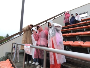 オフィシャルクラブパートナーでもある福島ユナイテッド対カマタマーレ讃岐戦の観戦を行いました。悪天候の中の観戦となりましたが、全校生、全職員で声援を送りました。