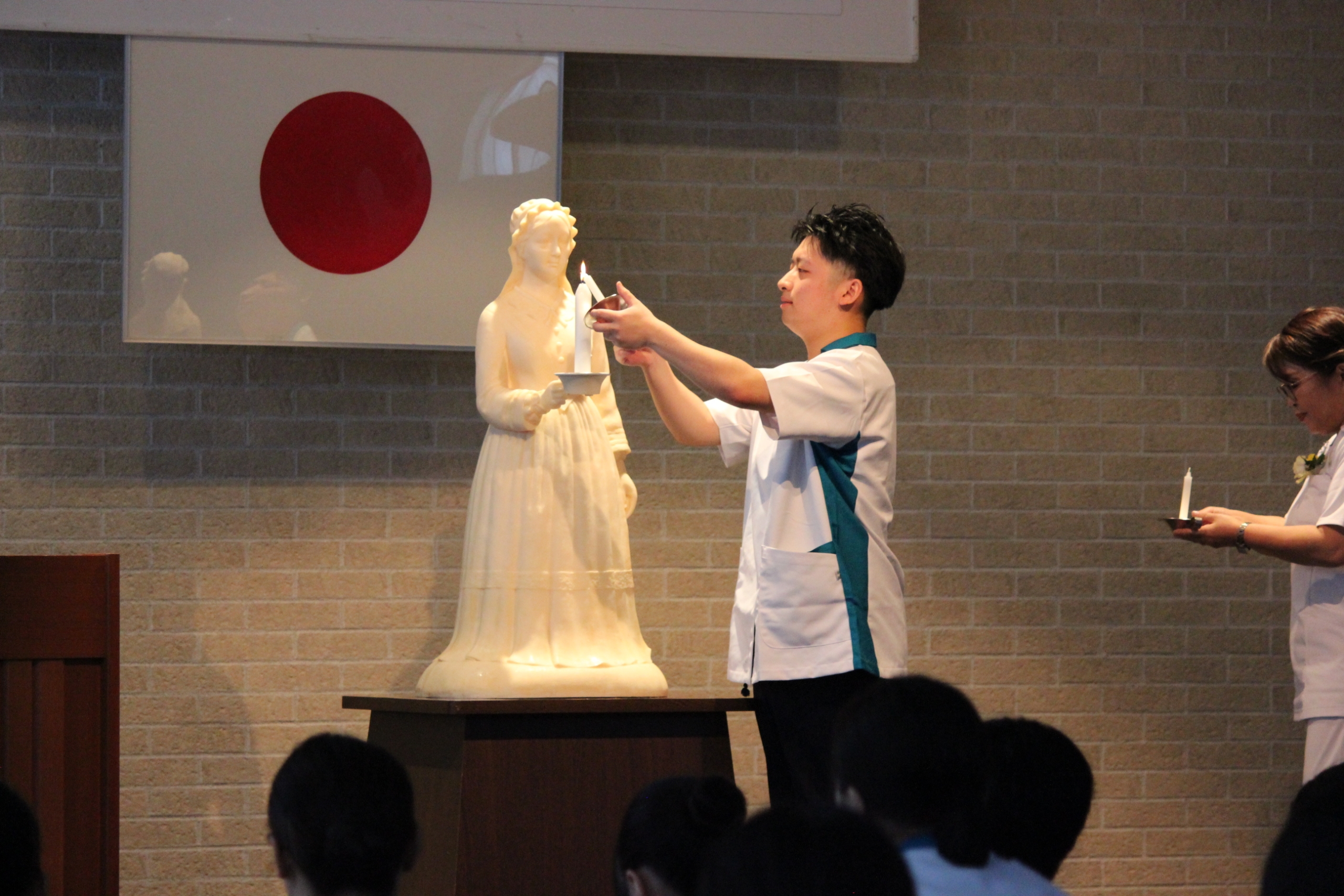 戴灯生は、ナイチンゲールから灯をいただき、その光を胸に灯しました。また、一人ひとりが誓いの言葉を述べ、看護の道への決意を新たにしました。