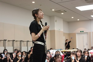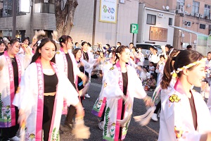 法被は小山前理事長が寄付してくださり、デザインは卒業生が考案してくれたものです。コロナ禍で4年ぶりの参加となり、参加できなかった卒業生の思いや復興への願いを胸に、全学生が一致団結して楽しく踊ることができました。